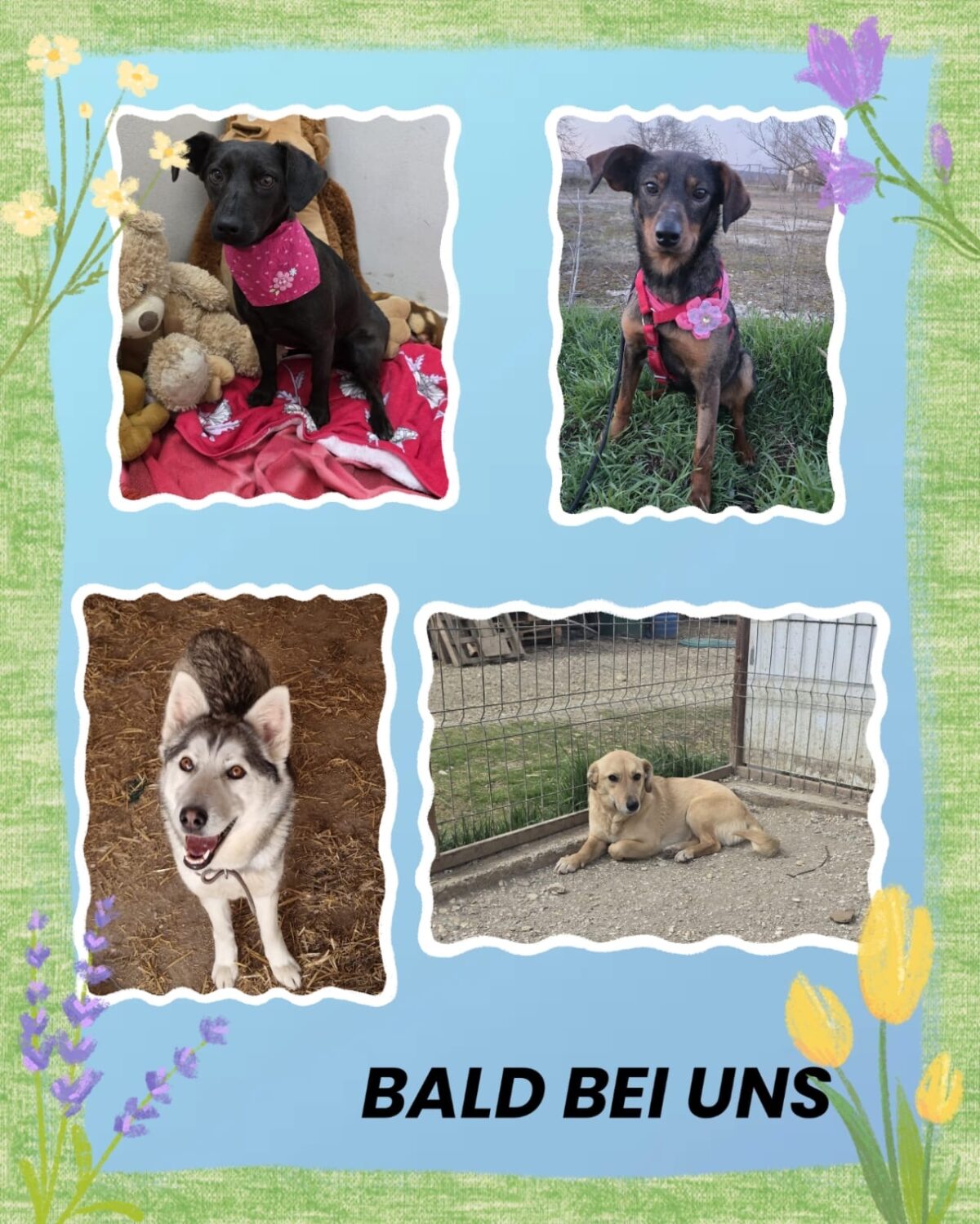 4 wunderschöne Hündinnen von Strassenhunde Rumänien in Not e.V. scharren schon mit den Pfoten und hoffen auf eure Unterstützung damit sie den nahenden Frühling in Deutschland erleben können.