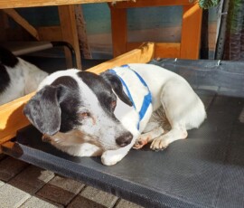 Am 31.08.24 kam der kleine moppelige Jimmy mit insgesamt vier Mädels im Schlepptau zu uns in die Hundeauffangstation. Lange Zeit war der ältere Herr ein kleiner „rühr mich nicht an“, nur zu seiner Freundin Chantal pflegte er ein sehr inniges Verhältnis. Aber eines Tages ist es dann passiert, mit seinen neun Jahren hat er einen Seitenschlaf mit Brownie mitten in der Station auf der Hauptliege begangen, also die beiden lagen so nah beieinander dass wir Mühe hatten Chantal zu trösten. Dieser kleine Casanova, getreu dem Motto: stille Wasser sind tief. Ok, fairer Weise müssen wir zugeben das Jimmy reumütig zu seiner Chantal zurückgekehrt ist und diese hat dann kurzen Prozess mit ihm gemacht und ist in ihr Für-Immer-Zuhause gezogen.