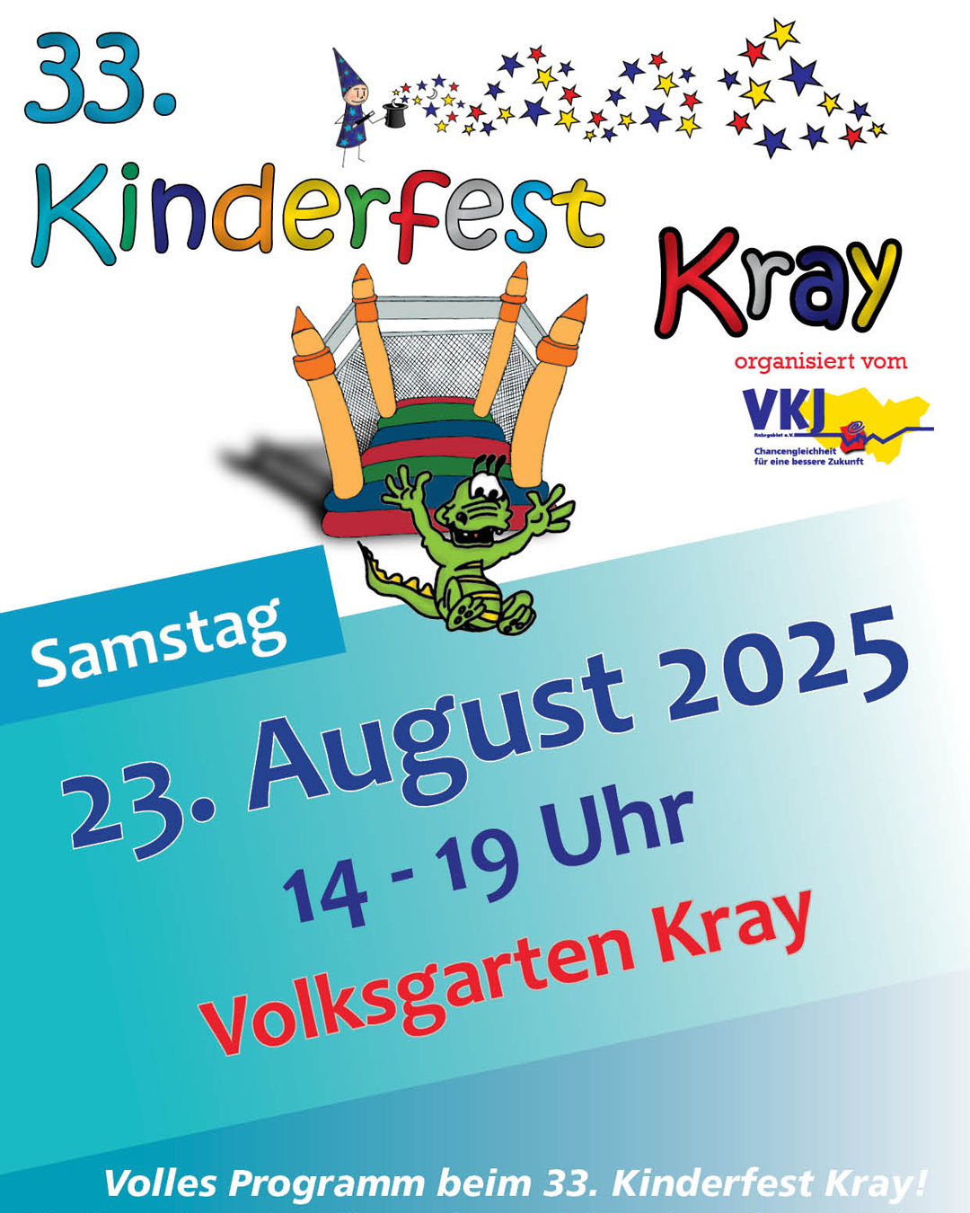 PVA meets Verein für Kinder- und Jugendarbeit in sozialen Brennpunkten Ruhrgebiet e.V. (VKJ) im Volksgarten Kray. Am Samstag den 23.08.25 heißt es ab 14 Uhr rein ins Kinderparadies im Volksgarten Kray, Ottostraße 61 in 45307 Essen. Dort findet dieses Jahr das große Sommerfest des VKJ statt und da es uns eine Herzensangelegenheit ist Kinder- und … „33. Kinderfest im Volksgarten Kray“ weiterlesen