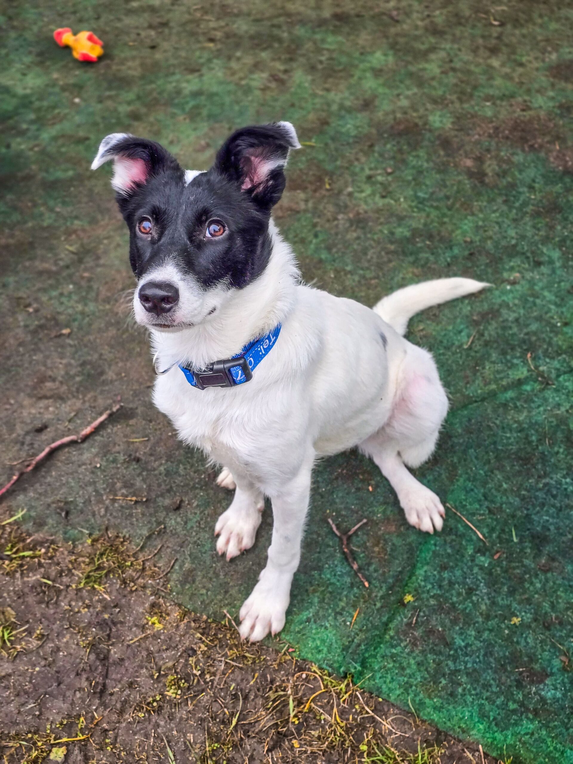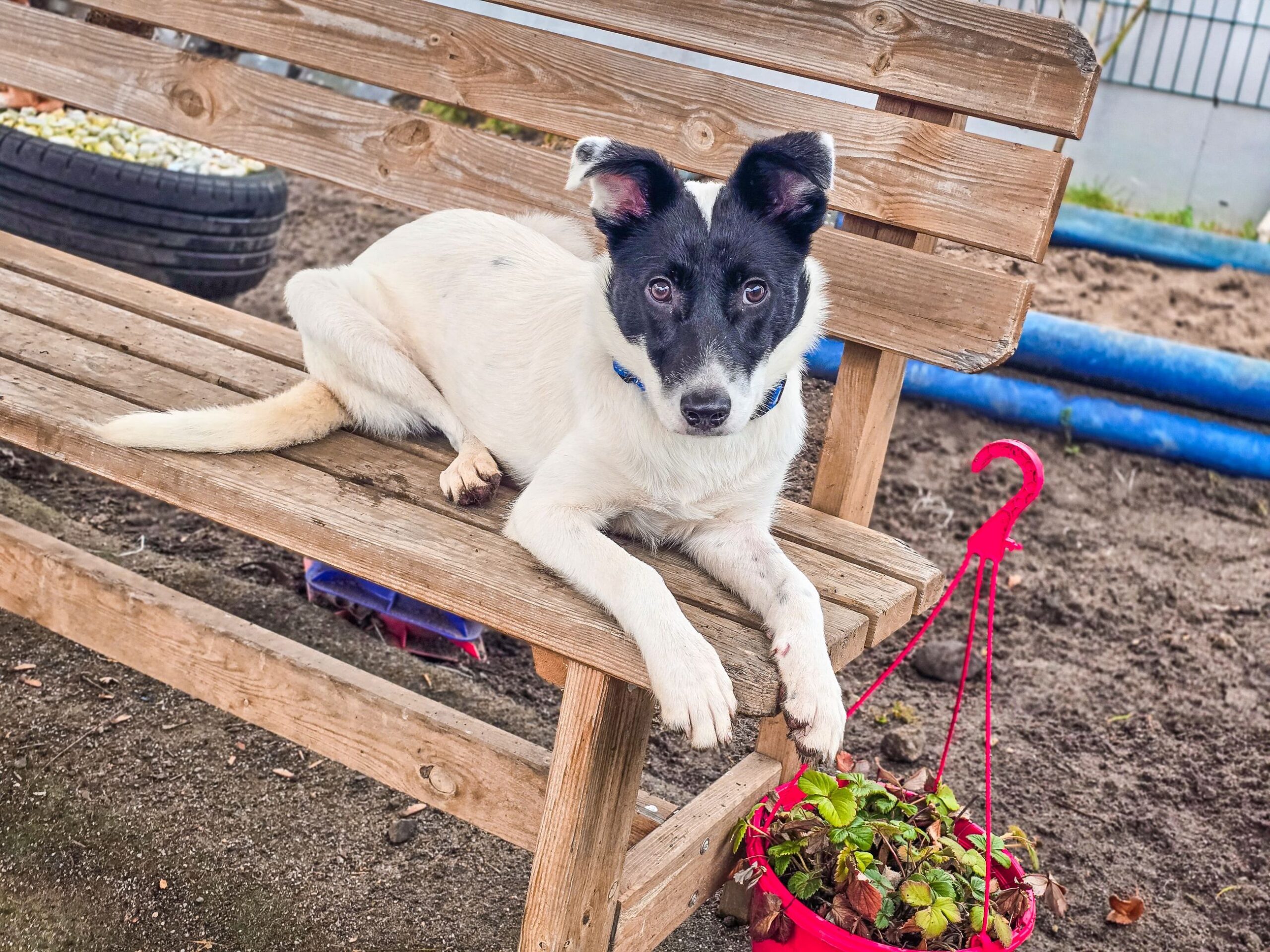 Je länger sie bei uns war, desto mehr zeigte sie Unsicherheiten, vor allem wenn die Station am Wochenende fast vor Besuchern platzte. Dann hat sie neue Menschen vor Unsicherheit bellend begrüßt, und auch manche Waden waren sehr interessant. Trotz allem hat sie schnell Vertrauen gefasst und hat mit ihrer verspielten Art Markus um den Finger gewickelt.