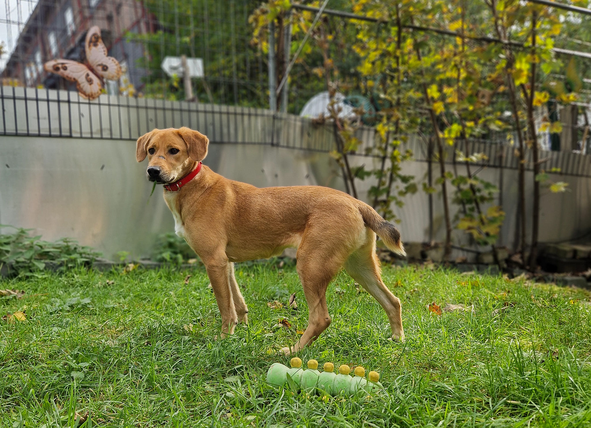 Bei Ankunft noch leicht zurückhaltend, mauserte sich Bizou in den Tagen danach zu einer lebensfrohen, verspielten und aufgeschlossen Hündin, die gerne mal mit Berlina den Hunderaum auf links drehte und bei Streicheleinheiten ganz vorne mit dabei war.