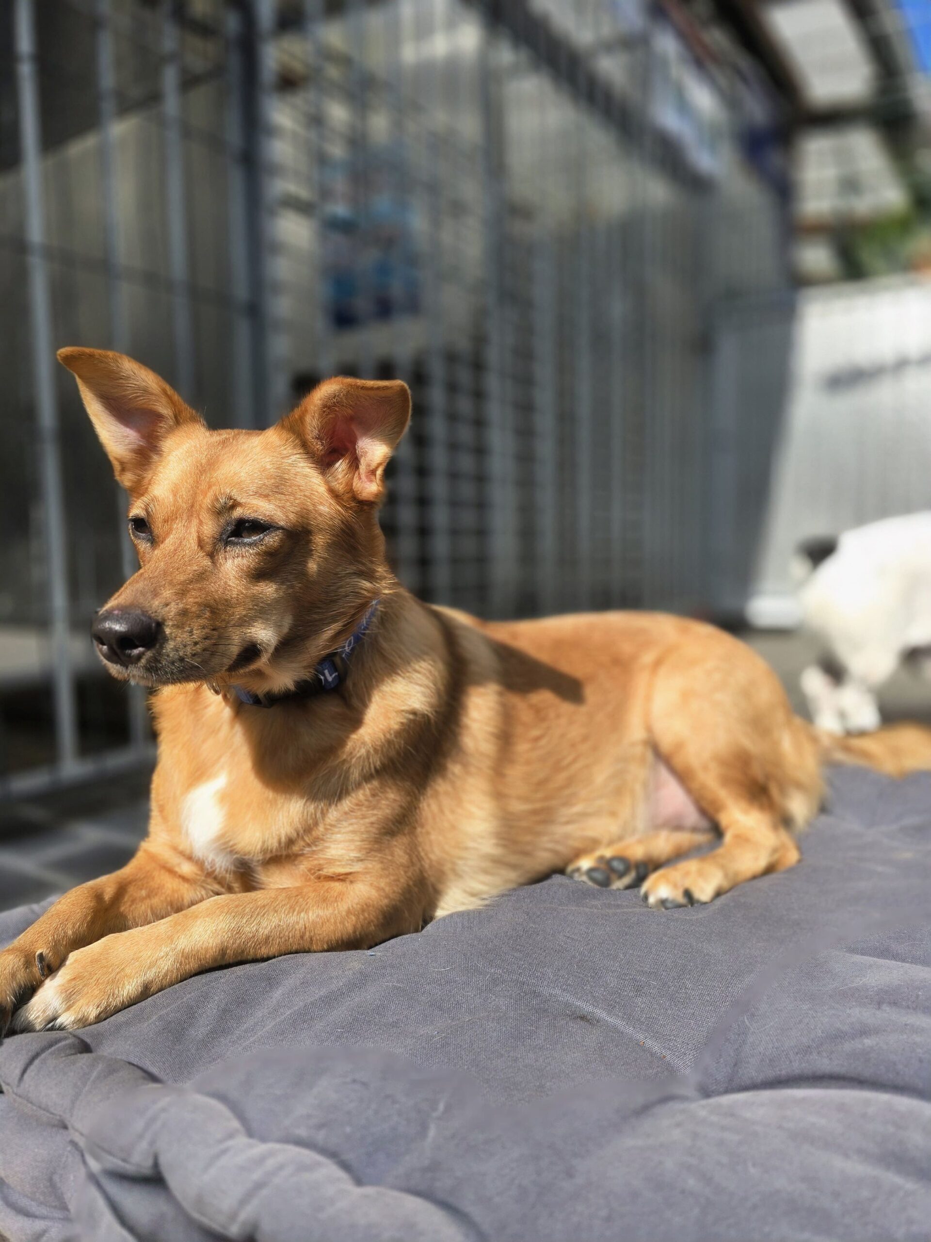 Unser kleiner Charakterkopf Brownie ist in den letzten Wochen ganz toll aufgetaut und hat sich gerne von uns Helfern durchkraulen lassen,während die meisten anderen Stationshunde für sie ziemlich uninteressant waren. Wobei sie zuletzt viel Zeit mit Jimmy verbrachte, sehr zum Missfallen von Chantal. Aber mit Brownies heutigem Auszug hat sich dieses Beziehungsdrama hoffentlich erledigt.