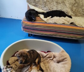 Von der ganzen Aufregung müde, dauerte es aber nicht lange, bis Cassa ihr Körbchen gefunden und die Vertragsunterzeichnung größtenteils verschlafen hat.