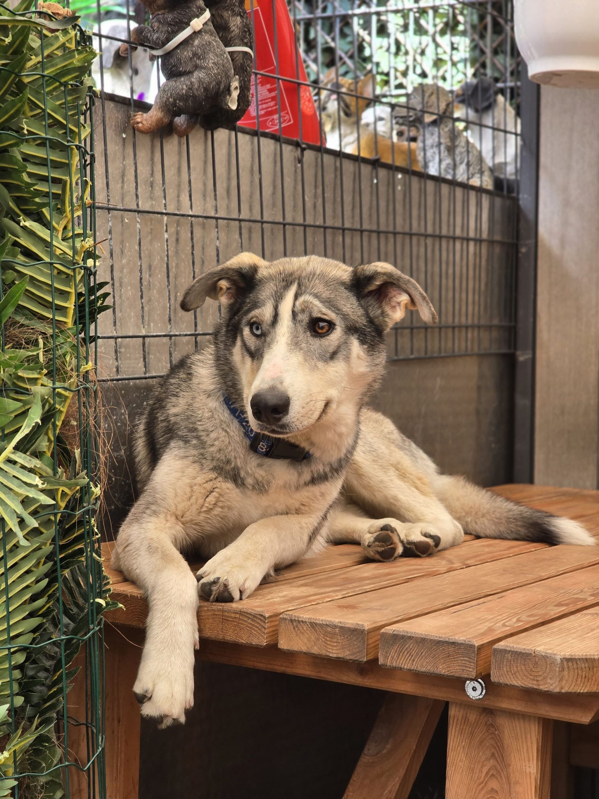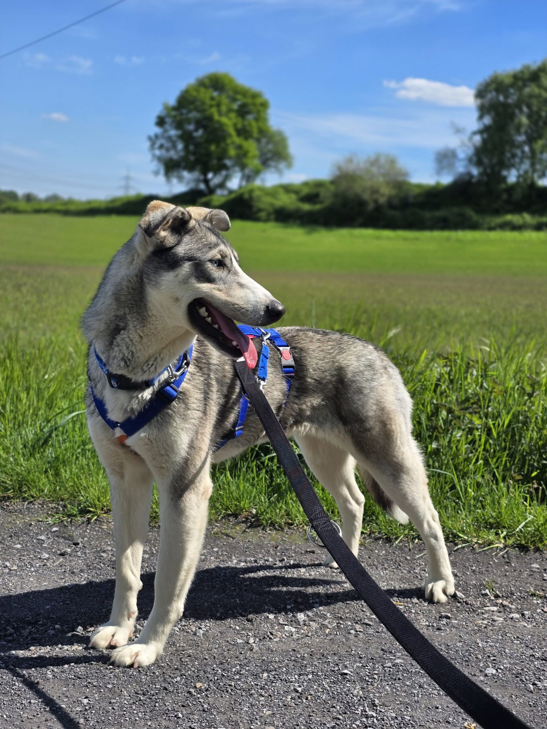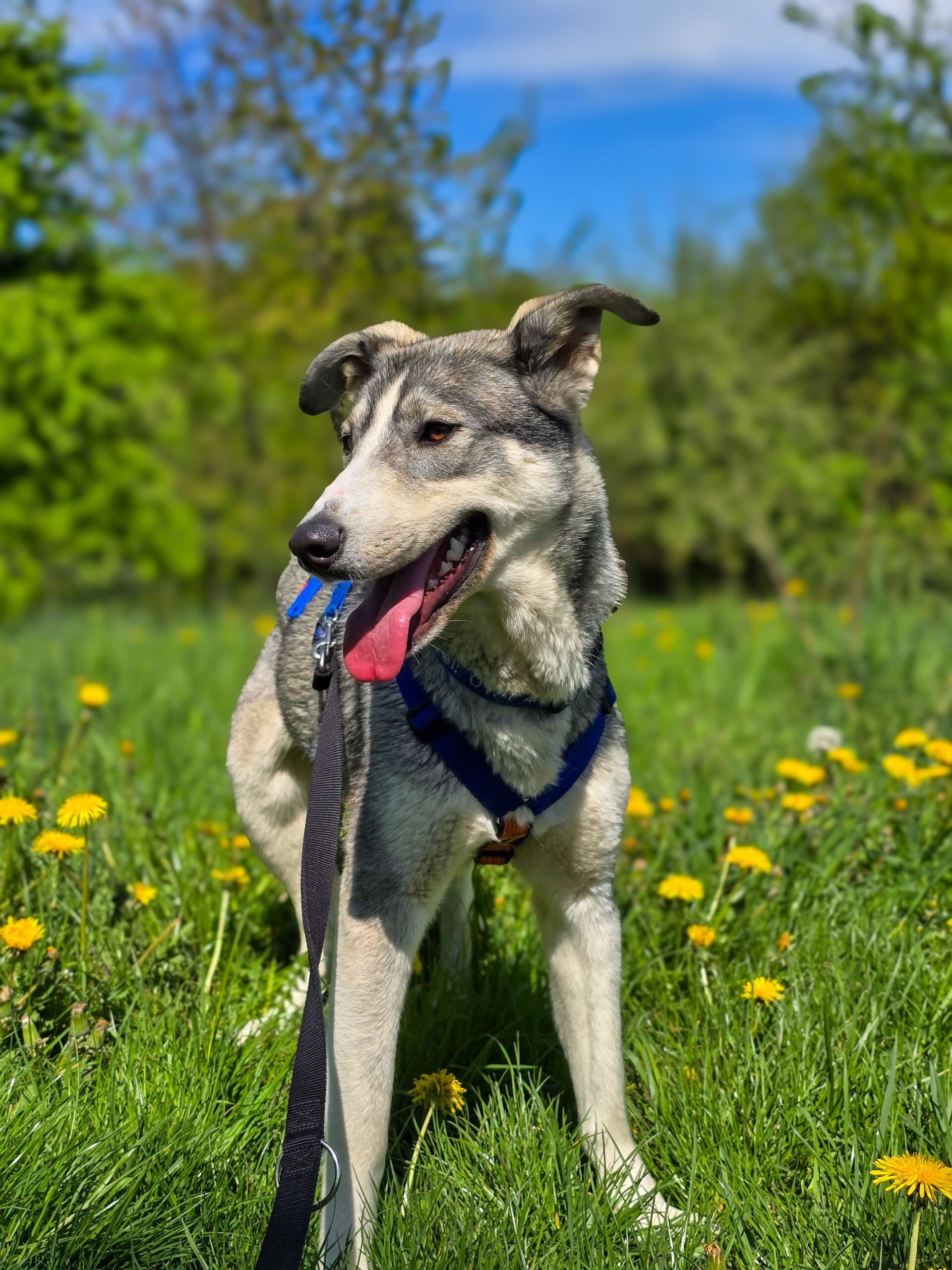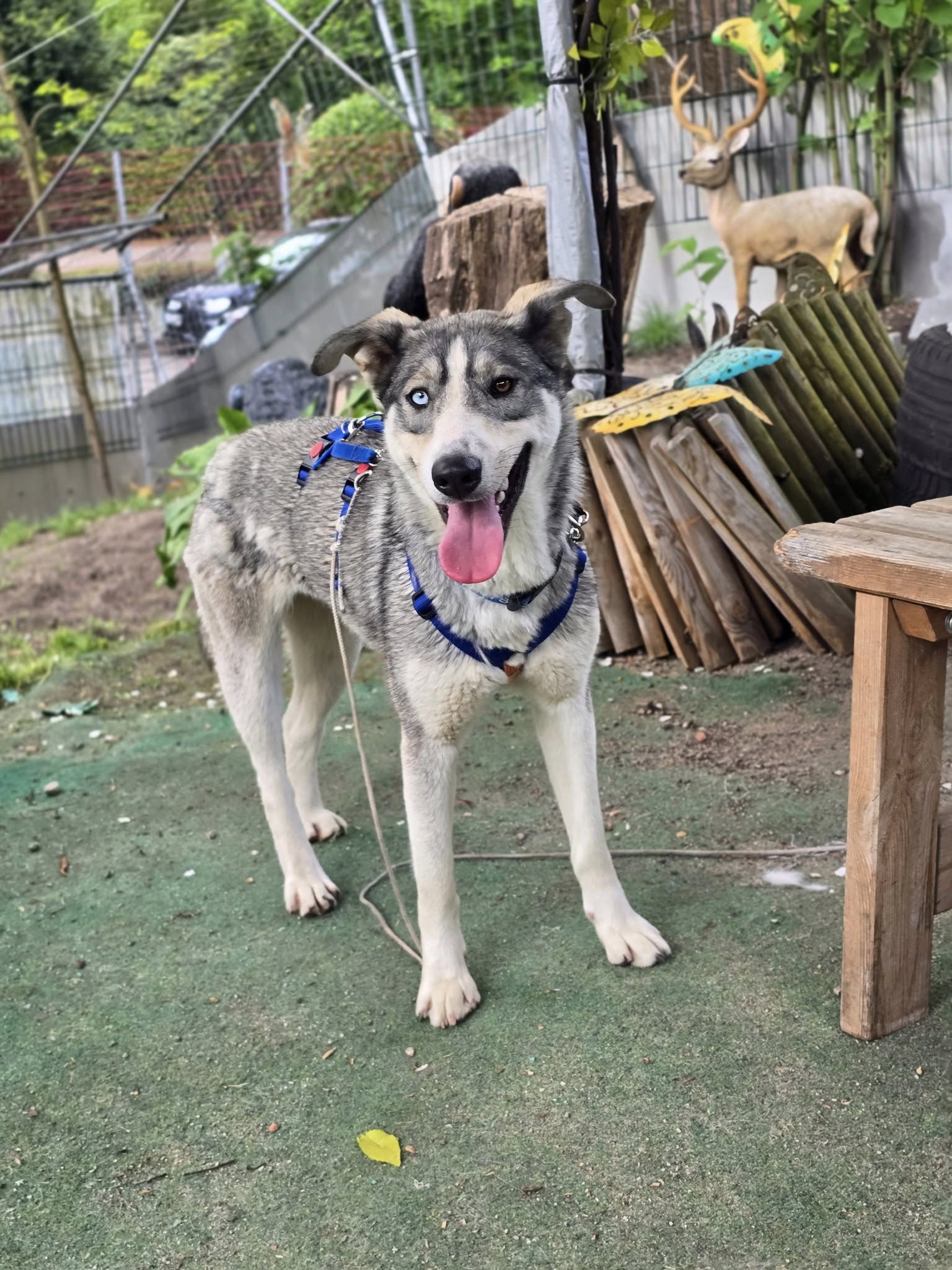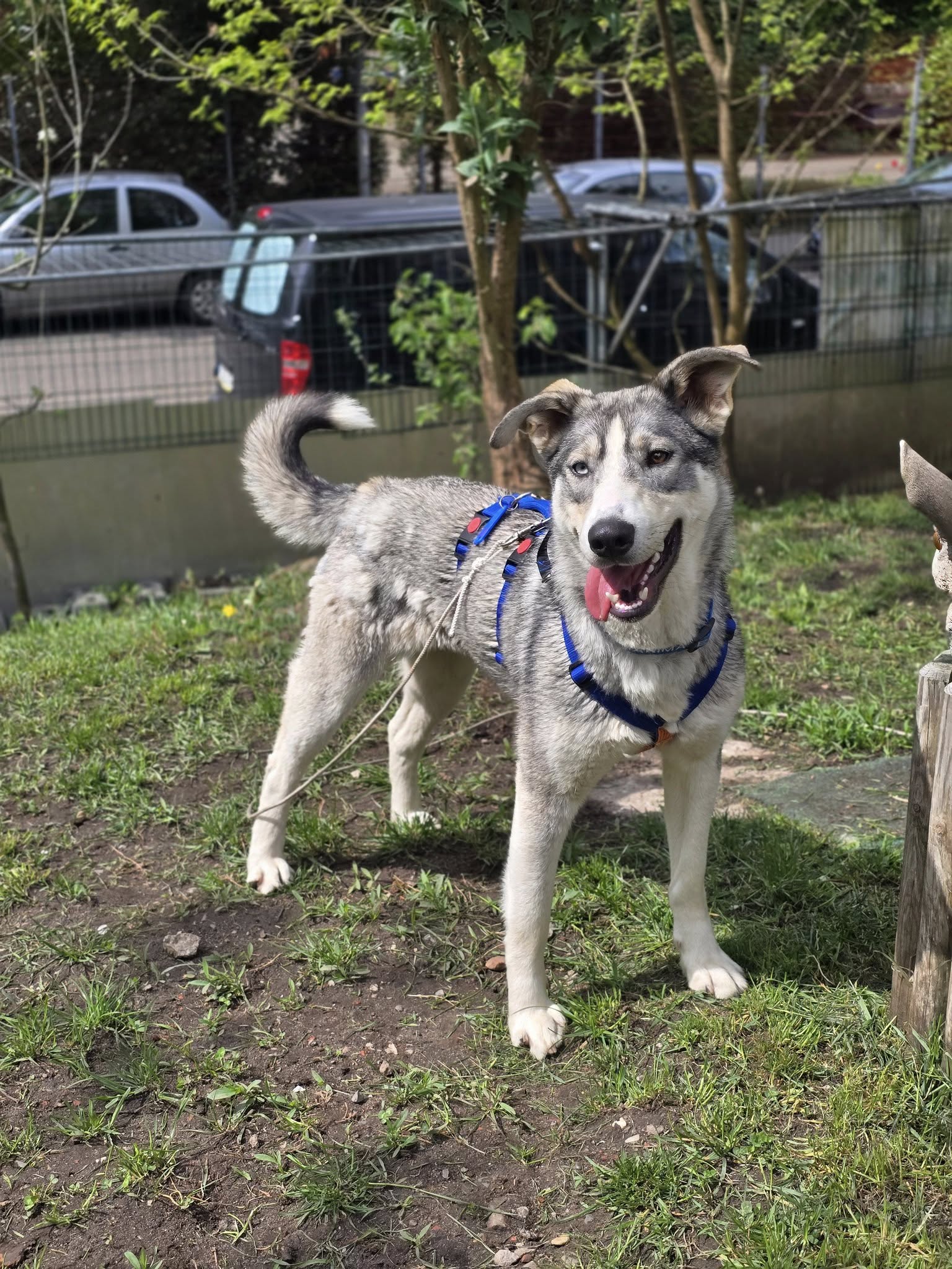 Sky, jetzt Mascha, diese wunderschöne Husky-Mix Hündin mit ihren zwei verschieden farbigen Augen kam am 21.04.2025 über Straßenhunde Rumänien in Not e.V. zu uns in die Hundeauffangstation. Sie kam und klaute direkt mal das Herz von Sabine. Mascha zeigte sich bei uns noch extrem zurückhaltend und war außerhalb der Hundestation erstmal von allem schwer beeindruckt. Wir können uns noch gut an die ersten Spaziergänge, bzw. Tragerunden erinnern. Aber mit viel Geduld und Liebe ist das junge Hundemädel mittlerweile draußen schon besser unterwegs und kann nun endlich so richtig in ihr Leben starten.
